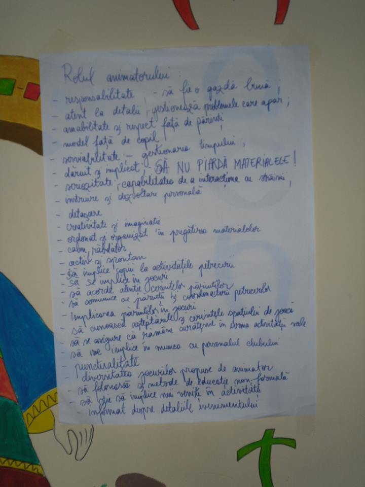 - la final fiecare cursant va preda o fisa cu un joc si o fisa cu proiectul de petrecere. Inloc sa prezinte tot proiectul său (pentru ca nu avem timp), vor propune pe rand, cate un joc sau activitate distractiva (una noua sau ceva ce déjà am jucat pe parcursul saptamanii). – vor primi feedback de la colegi si de la formator