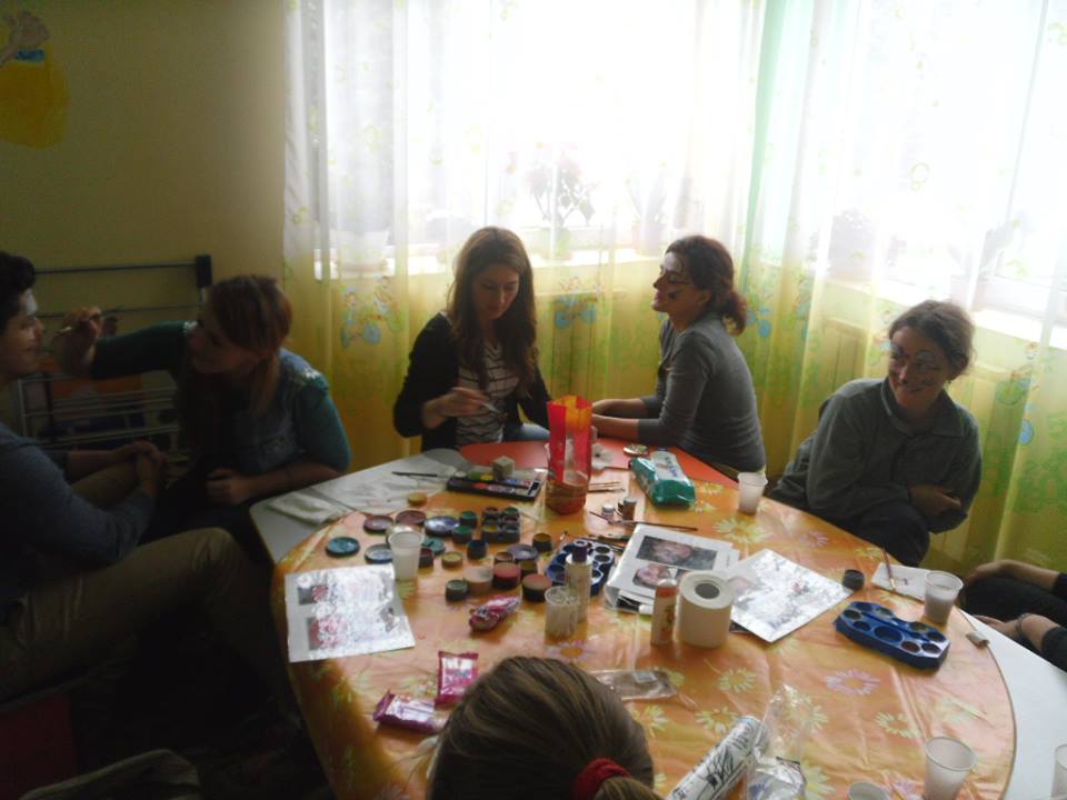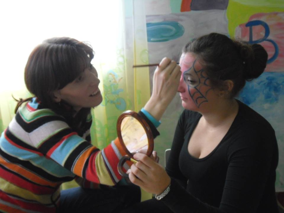 - workshop de Face painting pentru cei care nu stiu deloc (persoanele care stiu sa faca acest lucru vor lucra in echipa si vor pregati activitati si jocuri de petrecere pt. urmatoarea sesiune)