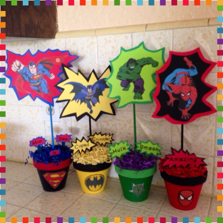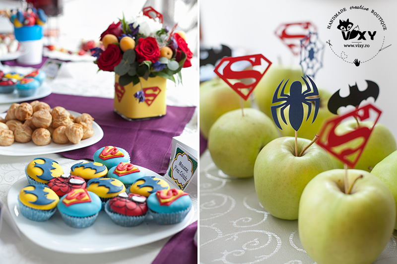 - propsuri personalizate cu Super Eroi pentru candy bar