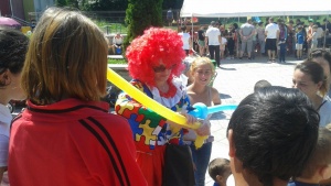 - cu clowni ce modeleaza baloane in magazine si supermarketuri