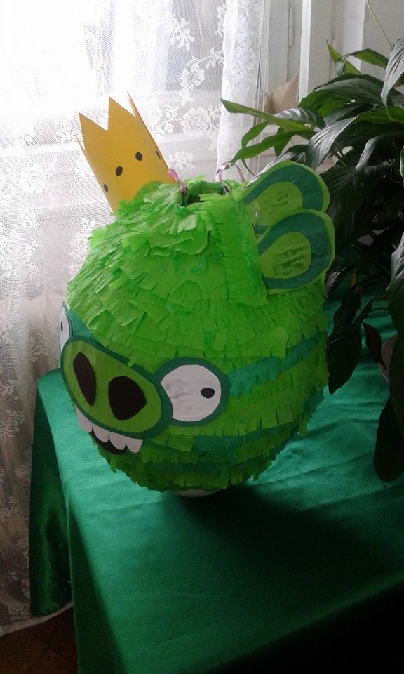 Dacă sunteți în căutarea unei pinate amuzante pentru tematica cu Angry Birds, aceasta pinata cu Regele Porcusor Verde este cea mai buna alegere. Pig Angry Birds Pinata este realizata manual, cu multe detalii. Poate fi, de asemenea, folosita pentru decorarea locatiei de petrecere înainte de a fi sparta.